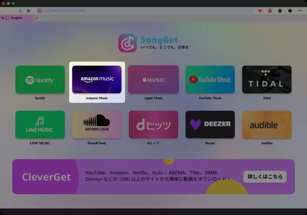 SongGet Amazon Music変換の公式サイトからアプリを無料ダウンロードします。